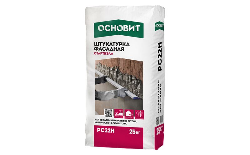 Цементная штукатурка ОСНОВИТ СТАРТВЭЛЛ РС22 Н предназначена для выравнивания стен из бетона, кирпича и ячеистого бетона.