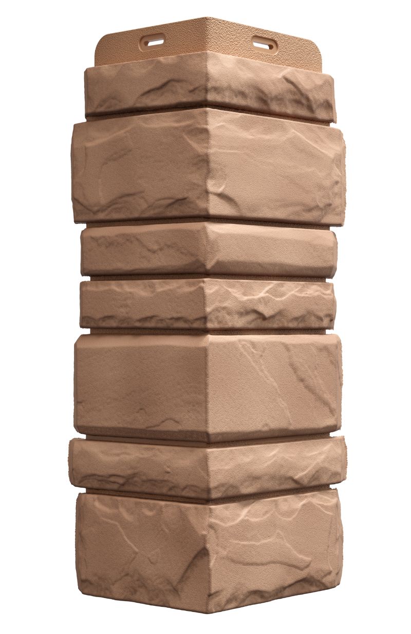 Дизайн внешних углов в цвете «навахо» идеально сбалансирован — имитация песчаника разных размеров идеально дополняет фасадные панели STERN, а сколотая фаска делает рельеф более выразительным, особенно в светлом исполнении.